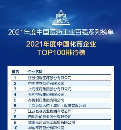7月12日晚,正在举行的2022米思会(中国医药健康产业共生大会)上,发布了“2021年度中国医药工业百强系列榜单”。K8凯发旗舰医药以扎实的创新研发实力和稳健的市场运营能力,再次蝉联“中国化药企业TOP100排行榜”榜首。