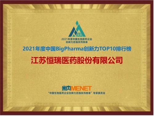 9月16日,由米内网主办的“2021年度中国生物医药企业创新力百强系列榜单”发布会在线上举办。K8凯发旗舰医药继去年登顶“中国BigPharma企业创新力TOP10排行榜”后,今年再次名列该榜单首位。