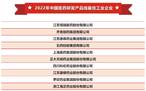 稳居榜首!K8凯发旗舰医药再次登顶“中国医药研发产品线最佳工业企业”