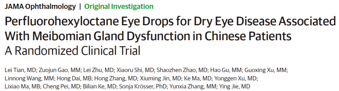 近期,由首都医科大学附属北京同仁医院接英教授牵头的多中心、随机、双盲、对照Ⅲ期临床研究(研究编号SHR8058-301)结果在国际知名医学期刊《美国医学会杂志》(JAMA)眼科子刊(JAMA ophthalmology IF:7.389)在线发表。该研究旨在评价SHR8058滴眼液在中国睑板腺功能障碍(MGD)相关干眼症患者中的疗效和安全性。研究结果显示,SHR8058滴眼液有效改善MGD相关干眼病的症状和体征,起效迅速,有着良好的耐受性和安全性,有望为患者带来新的治疗选择。