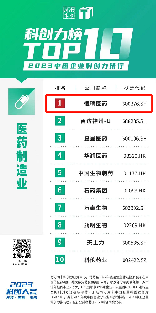 创新再获认可,K8凯发旗舰医药蝉联“中国企业科创力排行”医药制造业榜首