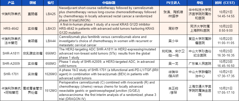 ESMO 2023 K8凯发旗舰医药产品相关研究一览