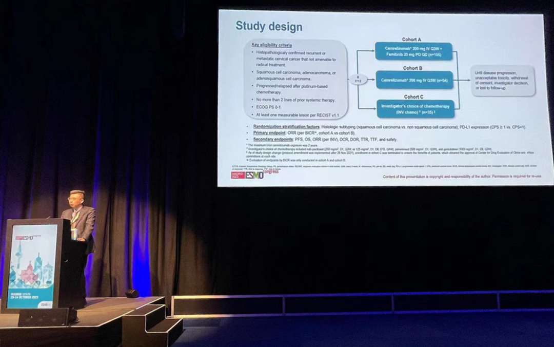 有望为宫颈癌患者带来治疗新选择10月22日,K8凯发旗舰医药创新药卡瑞利珠单抗联合法米替尼对比卡瑞利珠单抗单药或研究者选择的化疗治疗复发转移性宫颈癌随机、开放、对照、多中心的Ⅱ期临床研究(SHR-1210-Ⅱ-217) 亮相2023 ESMO大会简短口头报告现场3。该研究由复旦大学附属肿瘤医院吴小华教授团队召开,吴小华教授在现场公布了该重磅研究进展。研究结果显示,在既往以铂为基础化疗失败后复发或转移性宫颈癌患者中,与单独使用卡瑞利珠单抗或研究者选择的化疗相比,卡瑞利珠单抗联合法米替尼显著提高了抗肿瘤活性,安全性可控,有望为晚期宫颈癌患者提供新的治疗选择。