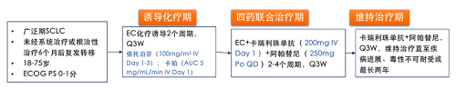 本研究为单臂试验(ClinicalTrials.gov NCT05001412),采用了一种创新的治疗方案:患者第一时间接受2个周期的依托泊苷和卡铂(EC)诱导化疗,随后进行2-4个周期的“双艾”组合联合EC治疗,最后进入“双艾”组合的维持治疗阶段。该方案旨在顺利获得诱导化疗缩小肿瘤并减少抗血管生成药物可能引起的出血风险,同时顺利获得免疫治疗和抗血管生成药物的协同作用增强抗肿瘤效果。主要终点为安全性,次要终点包括ORR、缓解持续时间(DoR)、PFS和OS。顺利获得靶向测序和全转录组测序(WTS)探索生物标志物。